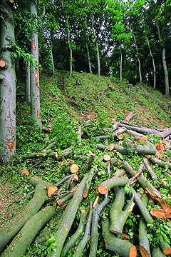 Am 23. Mai 2003 erreichte mich morgens telefonisch der Hilferuf einer Hamburgerin, die am Fischerstrand Binz spazieren ging: "Am Beginn der Granitz fallen herrliche Buchen - wie ist sowas möglich?!" Innerhalb der nächsten Stunde glühte mein Telefon, bis ich über Bergen, Rostock und Binz den (Un)Verantwortlichen ermittelte, der Ende Mai, wo kein Baum mehr fallen darf, ca. 10 gesunde Buchen fällen läßt. Abt.- Leiter Maier der B V V G Rostock versuchte mich mit groben Lügen von der Richtigkeit seiner Tat zu überzeugen. Alles wäre abgesichert - man würde nur "verkehrssichernde Maßnahmen" durchführen (Bäume entnehmen, die Passanten gefährden). Von Umweltamt und Landschaftspflege-Behörden wurde das umgehend dementiert und dieser Frevel sofort gestoppt. Der Land-schaftspflegeverband teilte mit: "Vor 2 Jahren haben wir eventuell gefährdende Bäume entfernt. Eine weitere Sicherungspflicht besteht nicht." Das Nationalpark- |