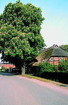 Diese 2 Prachtexemplare haben 200 Jahre auf dem Buckel, sind kerngesund und Fotomotiv vieler Touristen. Seit über 1 Jahr kämpft die Bürgermeisterin von Zirkow, Frau Bohn, für den Erhalt dieser beiden Kastanien. Die Besitzer des nebenstehenden Hauses erwirkten per Gerichtsbe-schluss die Fällung, die lt. Gerichtsvollzieher bis